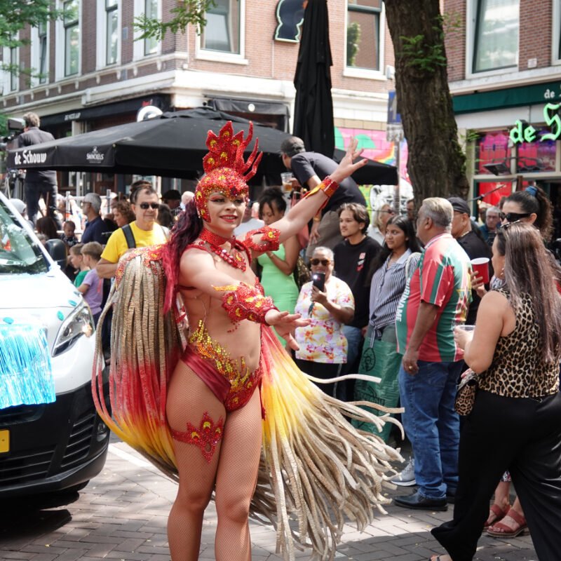 Zomercarnaval is known for its street parade, a 5 km procession through Rotterdam’s centre packed with vibrant dance, music, and culture that brings the city to life. It celebrates diversity, community, and the joyous blend of Afro-Caribbean traditions with Rotterdam’s local cultural fabric.